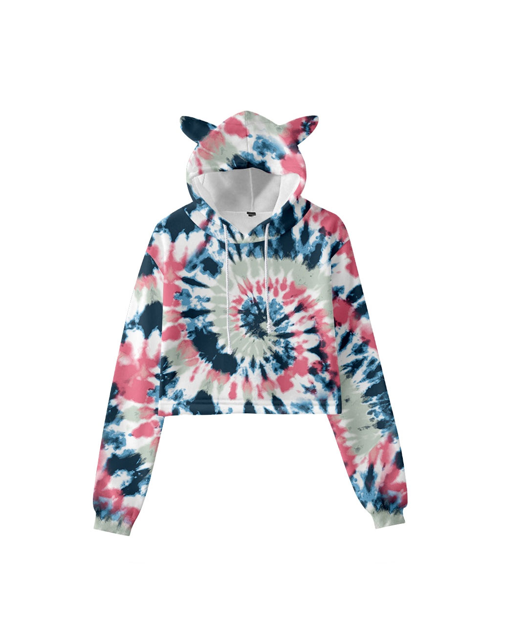Fashion Women Crop Top Hoodie Tie Dye Custom Print Female Pullover Cat Ears for Girls